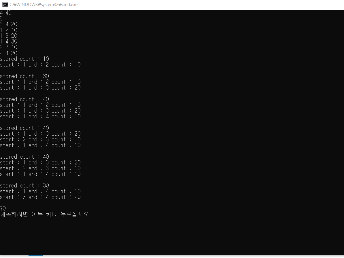 남아있습니다. 그것을 모두 배달하고 결과를 출력하면 되겠습니다.