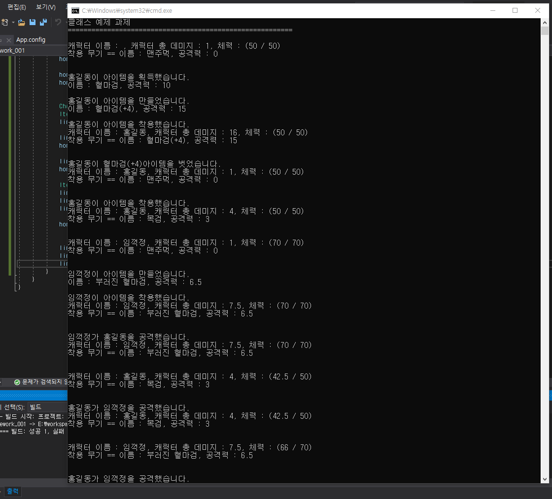 Console.WriteLine("클래스 예제 과제\n=========================================================\n");