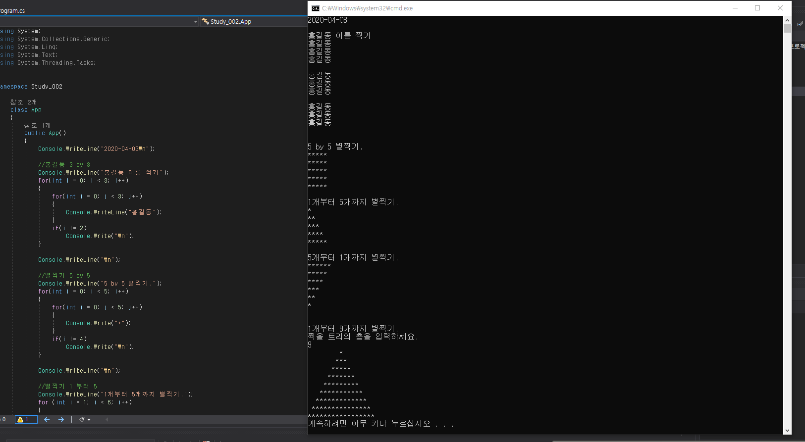 Console.WriteLine("홍길동 이름 찍기");
